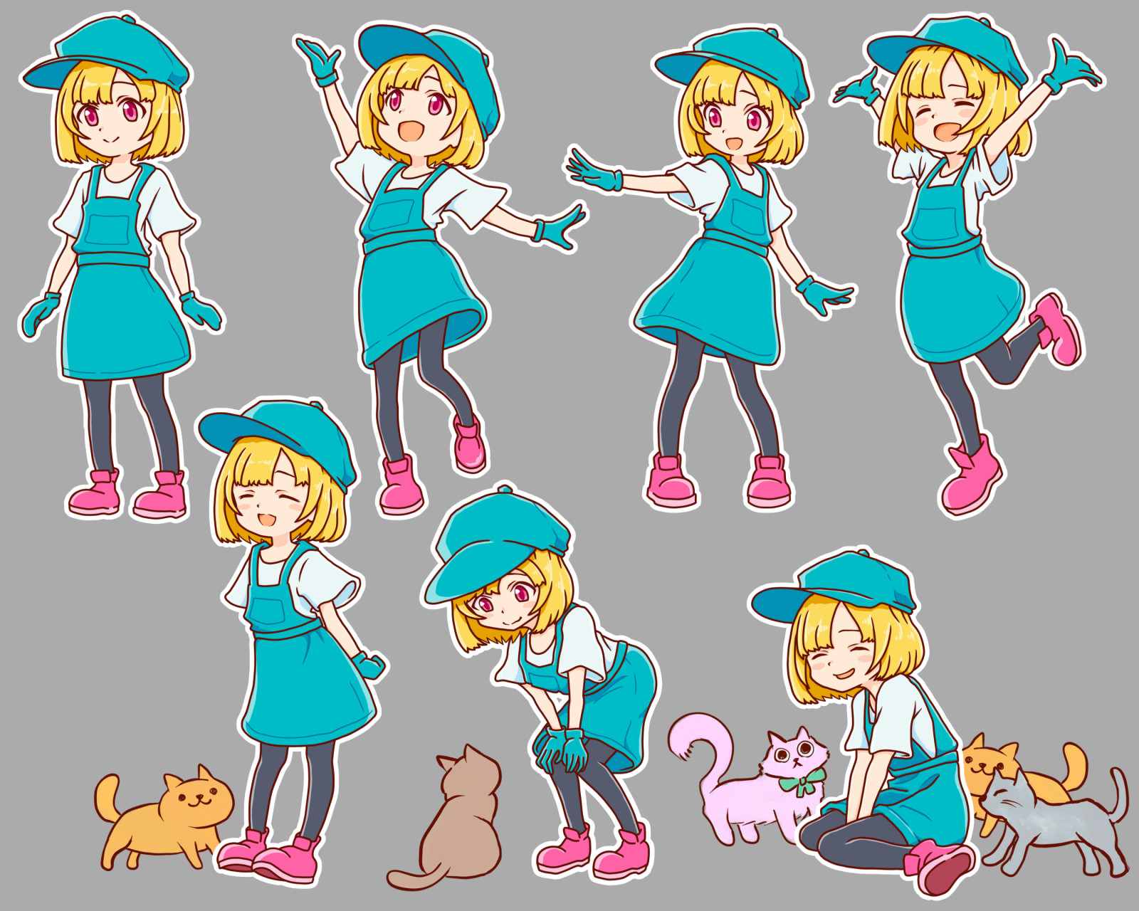 - アクセントで瞳と靴に鮮やかなピンクを入れよう