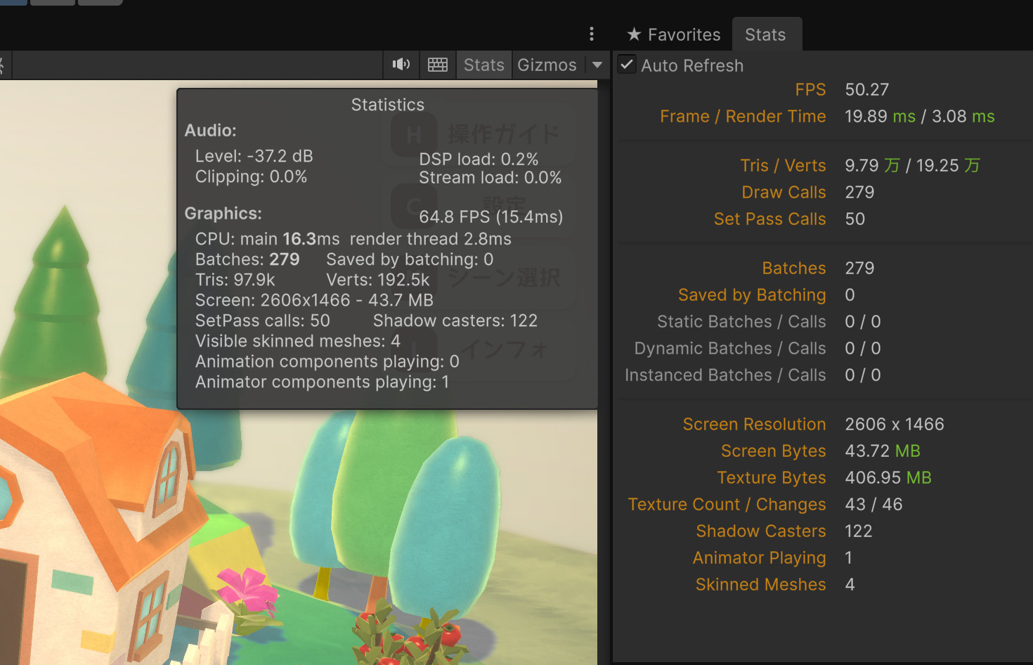 ■ Game View の Stats で出る統計情報を、Game View の外側で見られるやつ