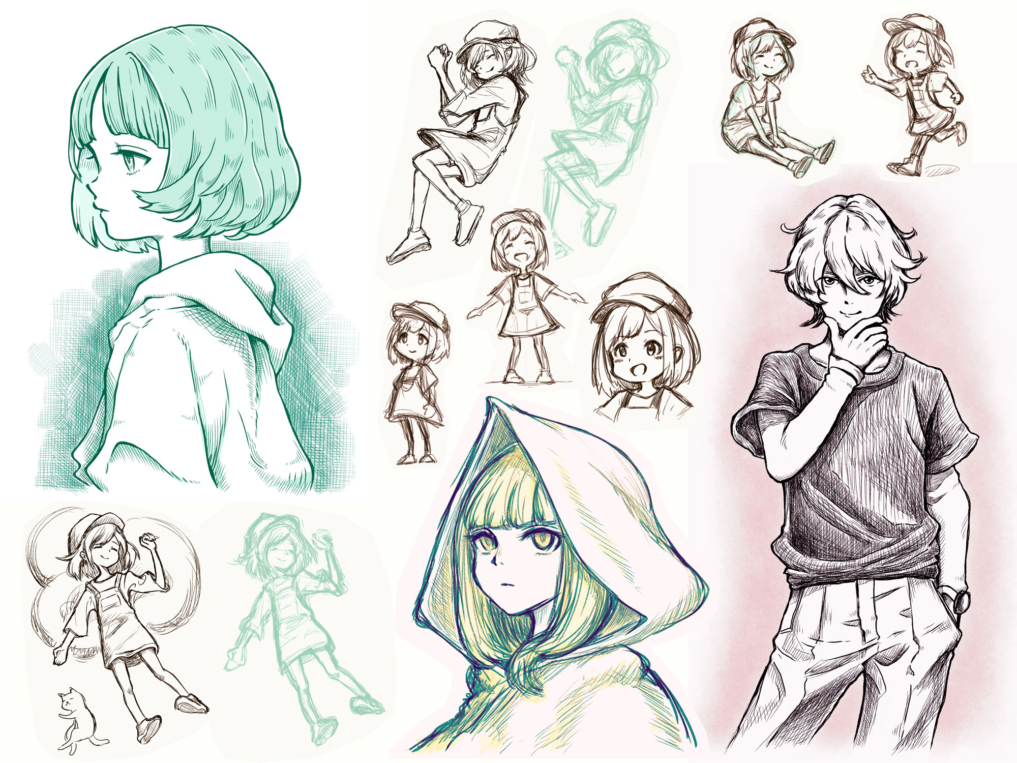 - このゲームを作ってから「もっと絵心をつけねば」と思い絵の練習をするようになったところがあるので、現在の自分の力を試すつもりで描いた